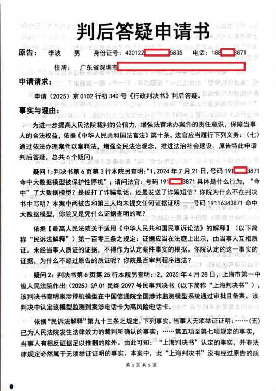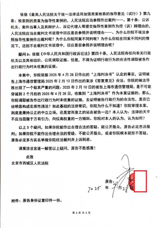 (本案案情简介:2024年7月21日我的手机被中国电信停机;12月22日我向上海市通信管理局邮寄《行政履职申请书》;2025年2月10日,上海市通信管理局作出《答复意见》,没有责令中国电信向我赔礼道歉;2月11日我向工信部申请行政复议;3月20工信部作出《行政复议决定书》,驳回我的复议请求;3月21日我向北京市西城区人民法院邮寄《行政起诉状》;3月24日北京市西城区人民法院当天收到邮件,当天闪电立案;5月13日,在北京法院线上庭审顺利完成;9月26日,法院作出一审判决,驳回我的诉讼请求;9月28日,我向北京市西城区法院邮寄递交《判后答疑申请书》,目前等待法院答疑,并准备上诉,)