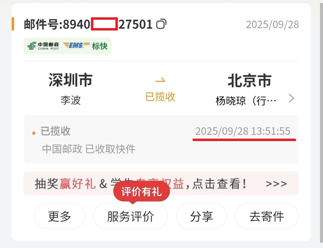 2025年9月28日,我向北京市西城区法院邮寄递交《判后答疑申请书》