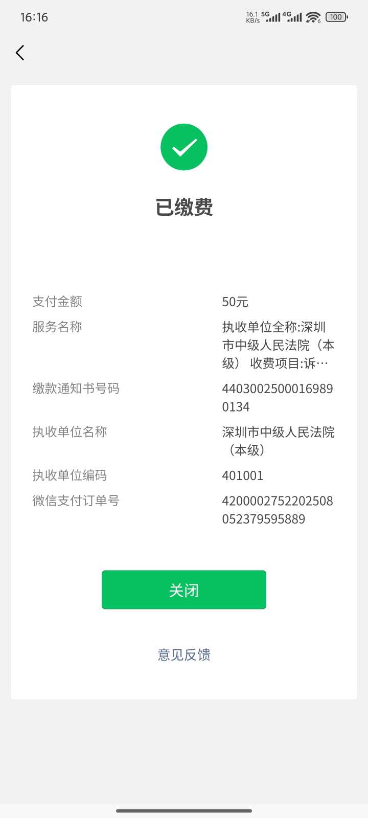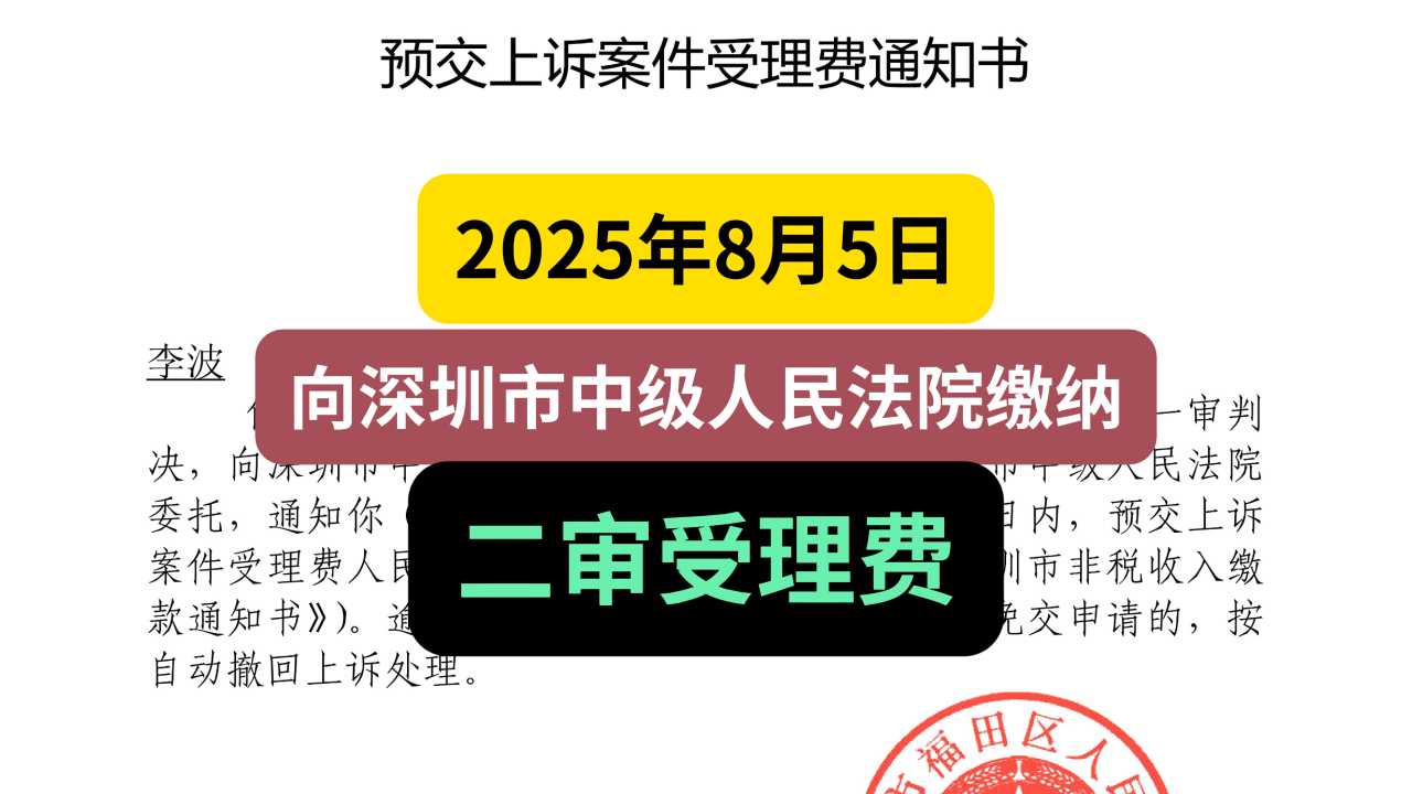 2025年8月5日,向深圳市中级人民法院缴纳二审受理费