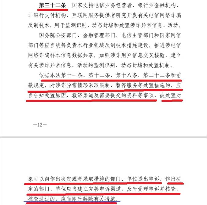 接下来我问了第2个问题:我一个正常使用的号码,为什么要再次重新实名认证?上海电信的答复再次重复是法律要求,然后我就很明确的告知上海电信:依据《中华人民共和国反电信网络诈骗法》第32条,上海电信把我手机号码停机,我向上海电信投诉,上海电信应当查明事实:如果我的手机号码确实存在诈骗违法行为,上海电信可以继续将我的手机号码封停、销号都可以;如果我的号码没有诈骗违法行为,上海电信就应当立即将我的手机号码复机,而不是要求我自己去网上再次实名认证复机。我向上海电信特别强调,这是《中华人民共和国反电信网络诈骗法》的规定,我们必须依法行事。