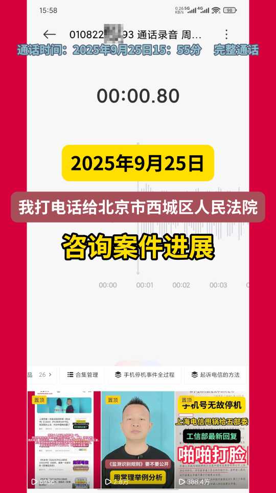 2025年9月25日,我打电话给北京市西城区人民法院,咨询案件进展