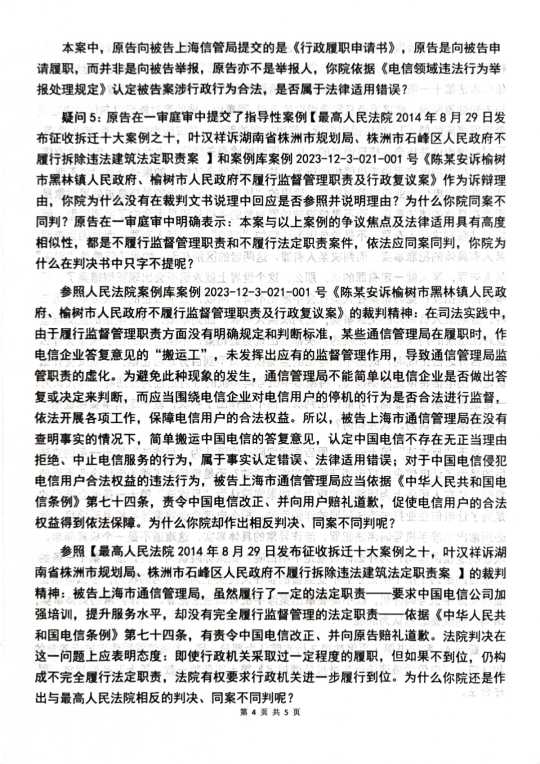 疑问4:判决书第7页倒数第3行本院认为部分:另,上海信管局作出被诉答复的程序符合《电信领域违法行为举报处理规定》第十四条第一款、第十五条等规定,程序合法。